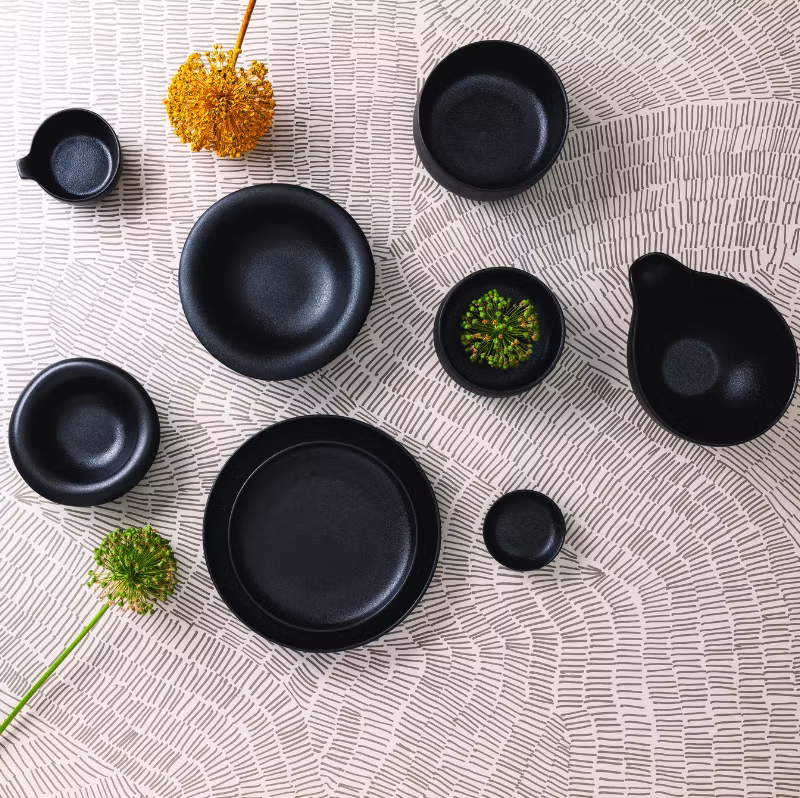 Skål i kollektionen Black Clay som är uttrycksfull och för tankarna till rått gjutjärn, men med böljande mjuka former. Kollektionen omfattar många unika serveringsdelar. Den svarta lite sträva ytan gör varje del särskilt lämpad för mix & match, vilket möjliggör personliga presentationer anpassade efter varje stil och behov.