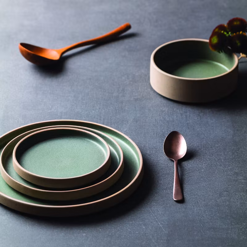 Djup tallrik med hög kant 13 cm Sandie Green stengods 6st/frp FRANKHUGO