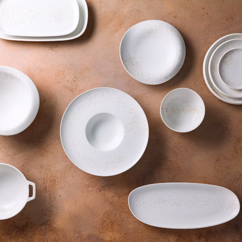 Mindre skål i varm vit färg med subtila beige accenter och mjuka linjer. Kollektionen White River innehåller en stor variation av delar – var och en med rundade men distinkta former. Genom ett spel med proportioner, höjder och tjocklekar kan fantastiska uppläggningar skapas.
