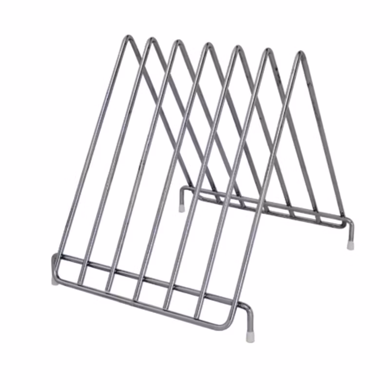 Skärbrädsställ i rostfritt stål som rymmer sex stycken skärbrädor.