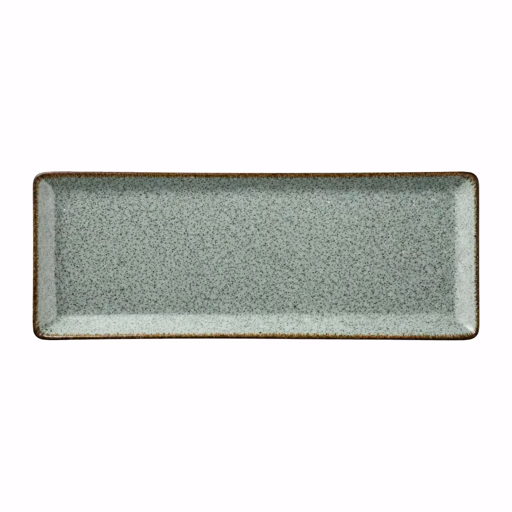 Rektangulär tallrik med sofistikerad gråblå ton och oregelbunden dekor som passar de flesta slags kök.